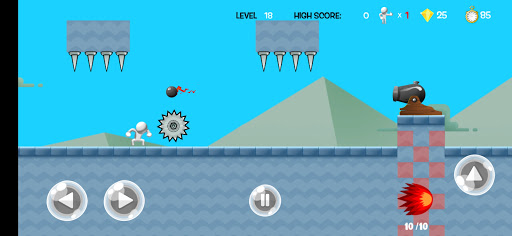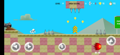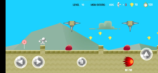 As a 2d platformer game, the game controls are super easy. Basically Mr Jumper need to run and jump to survive from his enemies and obstacles as in many jumping games. Also he can shoot if he has any collected bullets. Shooting down enemies is always a fun activity in addictive games.