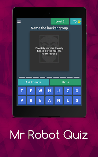 Mr Robot Quiz is a quiz game based on the American drama thriller television series "Mr Robot"