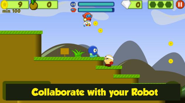 Explore the world then you'll find the robots, Magneta and Boxio. Magneta will help you to collect the coins, and Boxio will help you to fight the enemies.