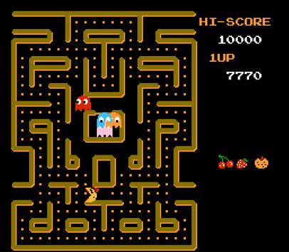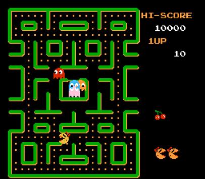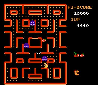 The player earns points by eating pellets and avoiding ghosts (contact with one causes Ms. Pac-Man to lose a life). Eating an energizer (or "power pellet") causes the ghosts to turn blue, allowing them to be eaten for extra points. Bonus fruits can be eaten for increasing point values, twice per round. As the rounds increase, the speed increases, and energizers generally lessen the duration of the ghosts' vulnerability, eventually stopping altogether.