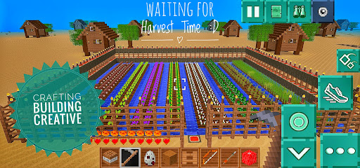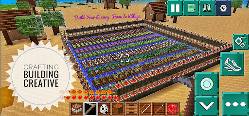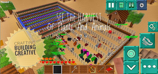 In Crafting Building Creative game, players have the ability to fly, run and swim in the world you create. To carry out this ability, the player's energy will decrease, to increase this energy the player must eat, food can be obtained from gardening, raising livestock or picking apples that are available in certain biomes. To raise livestock, you can plant corn, wheat for food supplies, and cotton for cloth needs. There are several animals for farming cows, sheep, chickens. There are several nuisance animals in agriculture such as rats which are agricultural pests. Apart from raising animals for consumption, you can also hunt animals for meat, hunting rabbits or wild boars.
