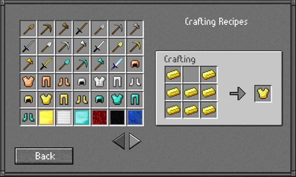 - Crafting recipes screen for all items in game.