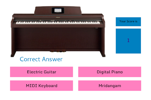 Initially, added Level 1 with important musical instruments available across the Globe which are used in various types of Music compositions & you have to tap or click on the correct name to identify that particular musical instrument. I have done some more strong research to make such one more important productivity to provide some more interactive education for International markets, good & easy learning experience too along with playing; & to also promote correct use of Gadgets, Smartphones or Tablet PC etc. I have personally developed this Music Game App.