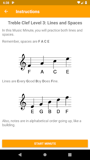 Each Music Minute consists of a small lesson followed by a 1 minute drill to practice what you learned. Earn stars to measure your progress and watch your musical speed increase.