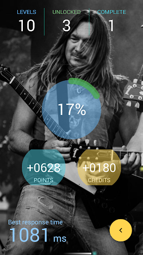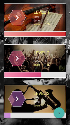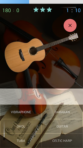 There are 10 levels organized by instruments popularity. More popular instruments are listed first so that difficulty increases on higher levels. While playing the game one can use info action to trade quiz credits for hints.