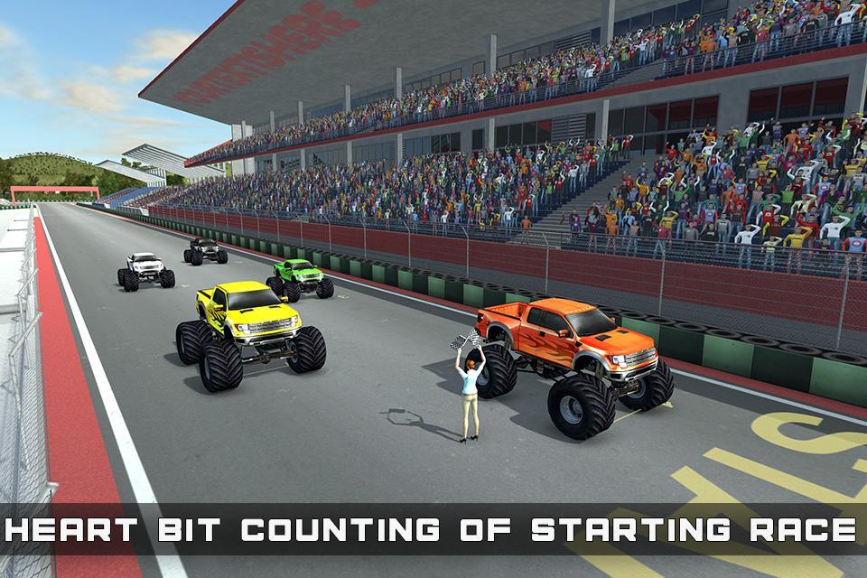This game is one of the best free truck racing game on The Android. Field Monsters madness: 5 different types of vehicles, that are superior between each other in monster destruction, have specific power system, suspension structures, traction types in it. . Adventure is waiting for you in authentic and genuine weather conditions are fully reflected to your vehicle color and shine and while playing its beautiful sound and big wide tires wandering on road is making a real driving feel in real climate of the weather. In the game attractive different Modes: Excitement awaits you in all kinds with Career, Time Challenge, Free Mode and Multiplayer. You can win different laps like beautiful roads bigger engine like for high racing trucks, tiers like win numbers and get expensive tiers for more road grip and break control in high speed, win multiple beautiful good looking, gorgeous and better sound monster truck jam game, win by stages completion different colors of the monster truck which can your game enjoyment more boost up.
