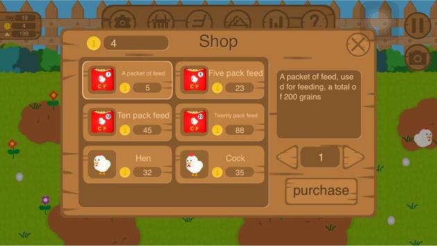 This is a very interesting simulated chicken game. We give you four chickens, one cock and three hens. Feed them in time, don't let them starve, continue to breed and grow your flock. Get a higher score. Take care of them carefully! Come on ~~