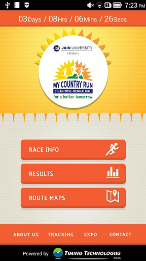 My Country Runmobile application is built exclusively to help all its participants and other running enthusiasts keep track of the race event. The Pre and Post race event features help users to seamlessly access all the required information about the marathon like Countdown-to-Race, Race Map/Route, Weather, Race Results,Tracking and many such features.