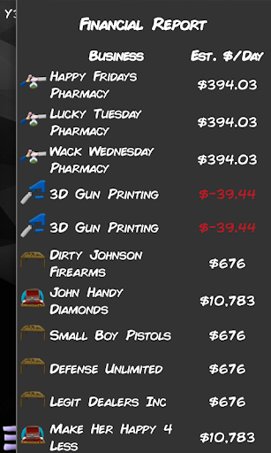 My Criminal Empire is an idle crime simulator and business management tycoon game. You start out with nothing as a common petty criminal on the streets, and build your way up to riches. Along the way you will have to manage resources, supply chains, employee relations, taxation, accounting and more, all while trying to keep the authorities off of your back!