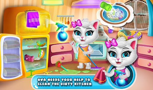 Ava's Kitty Pet Daycare cleaning activities & fun game, we have included so many different learning activities to educate your family in an entertaining way and keep your house clean. The cute Ava needs your help to complete her Daily Routine Activities. So you need to help her in every task she needs to perform and also take care of the kitty in this cute kitten game and home cleanup game.