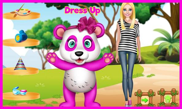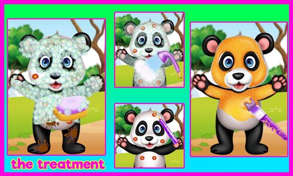 Start the game and follow the instruction to use properly the instruments you have arround for the treatment. Wash the panda's fur, apply masks, remove pimples so after this caring session the animal should look adorable. In the next level the baby panda will be happy and grateful about your help so it let's you change it's look. Change the fur color, add a tatoo, change eye's color and complete the look with a accessorie. The young lady will be very happy to see the baby panda healthy and good looking. Have fun and enjoy this caring aminal game!