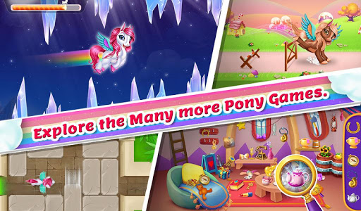 Welcome to Pony World, Pony World has Bubble Shooter, Spot the Difference, Hidden Objects, Makeup and Dress Up, Spa, Cake Making, Racing, Flying, Jumping Pony, Puzzle and Block Puzzle, Memory Match and many more games . In addition, there are a lot of mini games.