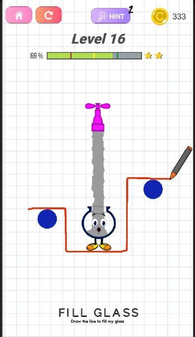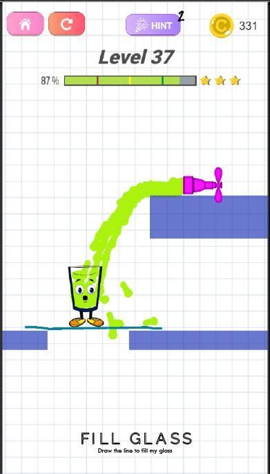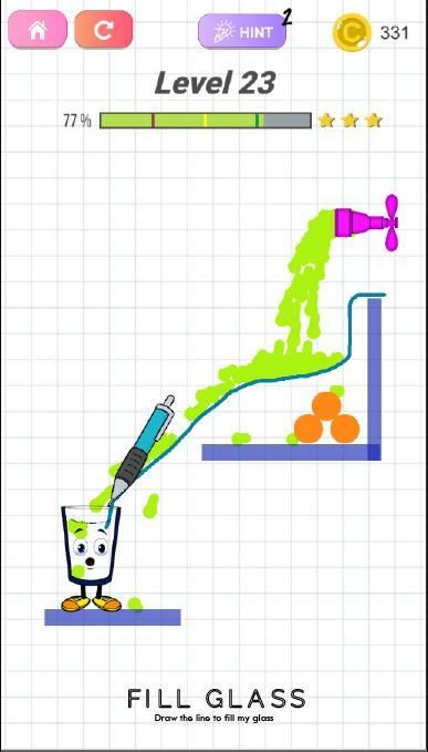 The glass is sad because it's empty. Your target is to draw a line to make the glass filled up with water and make it smile again!