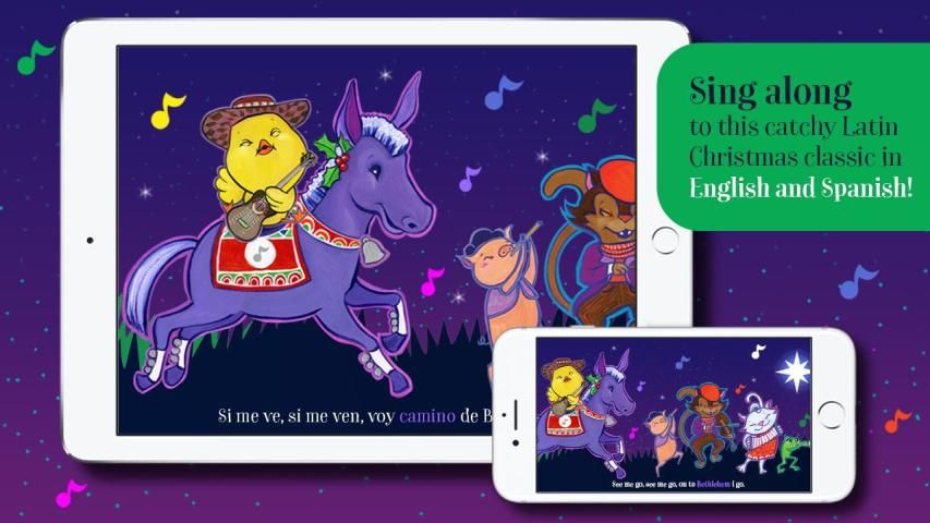 Little Donkey/Mi Burrito Sabanero is a bilingual (English & Spanish) holiday app based on one of the most popular Christmas carols: “Mi Burrito Sabanero” (The Little Donkey from the Savannah), which tells the tale of a journey with a trotting donkey to Bethlehem to meet Jesus.
