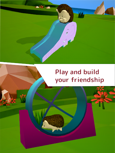 Watch this dynamic little creature play on the slide, trampoline, swing and many other facilities on the island. The more you play, the more he’ll begin to like you too. You can even give your hedgehog a name and dress it up with items and cute clothing.