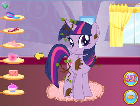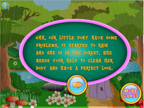 Twilight Sparkle wants you to join her in this new and fun online game, a new game in which she is the main character. Your friends from the My Little Pony series is always happy to offer you new and fun games and to spend more and more time together. This time she needs your help with some cleaning as she went for a walk into the forest and it started to rain very heavy. Noe she is very messy and needs to get cleaned in the shortest time possible and return to her duties for today. Join Twilight !