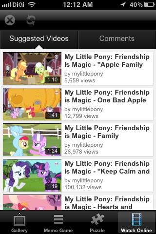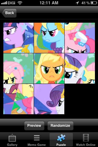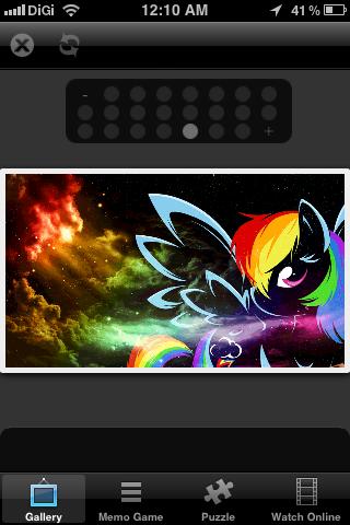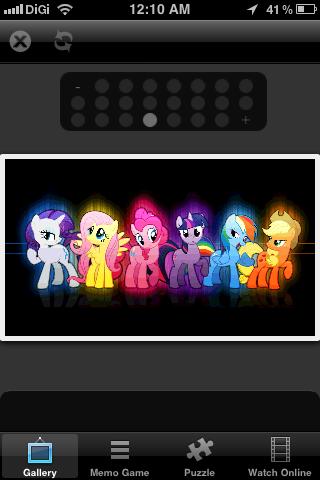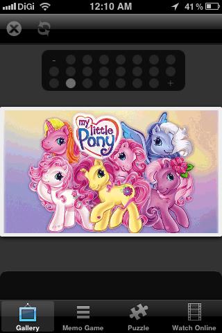 My Little Pony Free Photo App is free to download. It consist of Wallpapers and backgrounds application with beautiful high quality images My Little Pony is a brand of plastic ponies produced since 1983 by the toy manufacturer Hasbro. Marketed primarily to girls, the ponies feature colorful bodies and manes and a unique symbol on one or both sides of their flanks, referred to in the two most recent generations as "cutie marks". My little pony was again revamped in the mid-2000's with new and more modern looks to appeal to a whole new market.My Little Pony: Friendship is Magic is a Canadian/American flash cartoon series, produced by Studio B Productions, based on the My Little Pony universe. It was developed for television by Lauren Faust, who also did major work on both The Powerpuff Girls and Foster’s Home for Imaginary Friends. Since its on-air debut in October 2010, the series became a popular subject of threads.FEATURES:- A collection of high quality images of colorful cartoon My little pony: friendship is magic.- More than 20 stunning high-resolution images to your desktop android devices.- Amazing pictures selected manually based on rating system.- Collection of thousand My Little Pony free video. Now you can watch it everytime and everywhere.- Total of 12 different My Little pony jigsaw puzzle game.- Play the My Little Pony memory game on your android device- Application is totally free- Supports tablets and phones, MDPI, HDPI, XHDPI, mid-size, large, x-large and HD screens;The jigsaw puzzle game contains a huge number of unique puzzles. All of them are beautiful images with lovely characters you know well from the movie.Drag the pieces to the right place to create the image. Try to complete all levels and you will get the extra bonus, you'll love this game! Download it free to your android phone.This app contains various games that you can play in your free time, customized with images from My Little Pony!My Little Pony Free Game is the perfect game for kids, who dream about dancing in the dance studio. Check out wonderful graphics and different things you can do in My Little Pony Game.All copyright for the pictures belong to their respected owners.