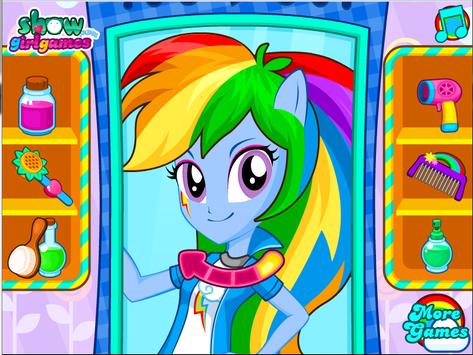 There is a beautiful little pony in our brand new hair design game. Come to join us and show us your excellent hair design skills. To start the game, you can firstly choose one nice image for little pony. Then come to wash her hair and give her hair wonderful care step by steps. After that, you need to choose one beautiful hair design for pony. Follow our instructions to design nice hairstyle carefully and decorate your design with fashion hair decorations. Thirdly, try your best to show us your dress up skills. Use our given dresses and accessories to dress up little pony. Show us this fashion pony with marvelous hair design at last. Have fun.