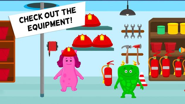 ✔️ Visit the fire station and meet every monster fire fighter. Get in the fire truck and rescue people in times of emergency.