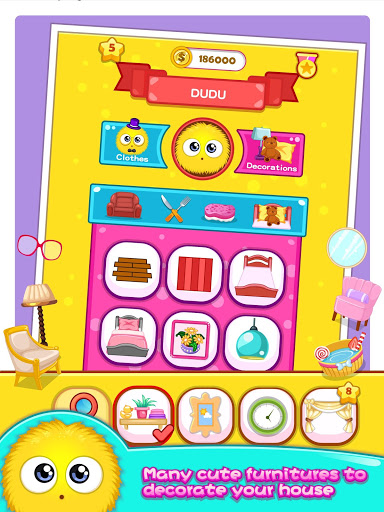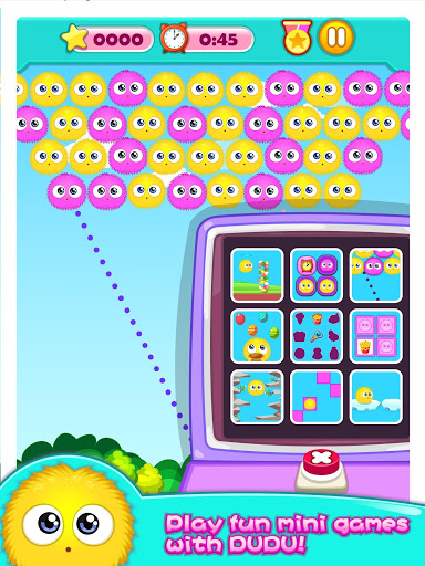 Adopt your very own pet monster Dudu! Feed, bath and play with it! Dudu is cute fluffy monster ball with big bulging eyes. It’s favorite food are burgers and lollipops.