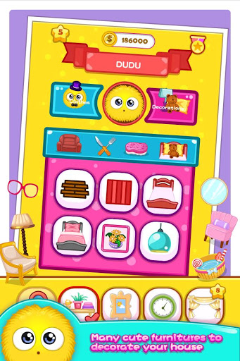 And like all pets, it needs your constant attention and caring. Play fun mini games to earn coins so you could buy furniture and decorations for your baby. Dress it up in funny costumes and introduce it to all your friends!