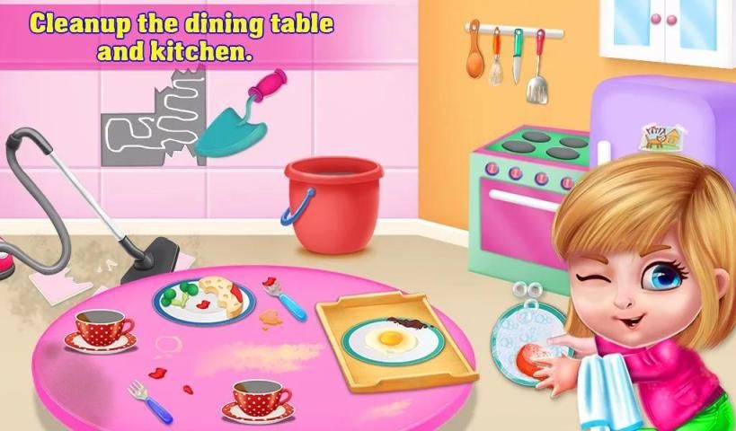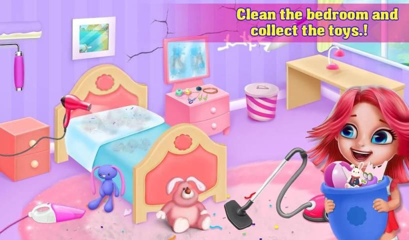 Meet our little princess in her house and help her to clean up the house. Select from five different rooms to clean up as the house is big and needs your help. Start with the bathroom where you have to clean the floor and make it sparkling as new. You can also enjoy a bubble bath with the freddy dog. After finishing bathroom you have to go to the messy bedroom to clean them. Put toys in a box, vacuum the floor, fix the wall and decorate a princess bedroom. Then go to the kitchen and wash the dishes, clean up the table, fix broken tiles and also decorate them. When everything is neat and clean, then pick out the perfect paints and decorate a princess room. Play and enjoy this house cleanup game and share with your friends.