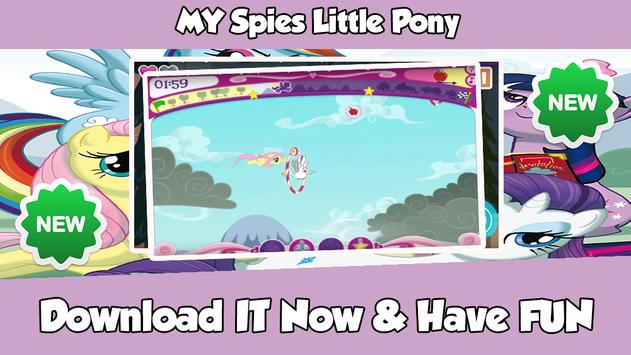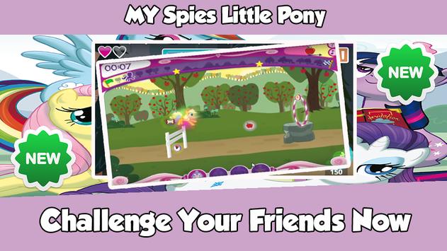 The hero little pony here is not the pony from the serie “My Little Po Equegir” to be precise and has nothing to do with the ponys Character in the cartoon! As you can see there is.. here ? ! It is created for fun!! It is now available with so much fun. Run in the nature … Run in a fun world full of princesses totally spie girls adventures. Jump over My Spies Little Pony Adventure is easy to play, you can give it to your kids and you can play it too .The most important thing is to help the little Pony , this super hero to collect money and find the gold he lost. In a princesses world full of adventure, you should make sure, you run and jump correctly, that you don’t run on spikes and don’t hit obstacles and don’t stop or the enemies will get you. Use your smooth, easy moves to guide our pony on his adventure. What are you waiting for now just try?...Just download this copy of this amazing game.