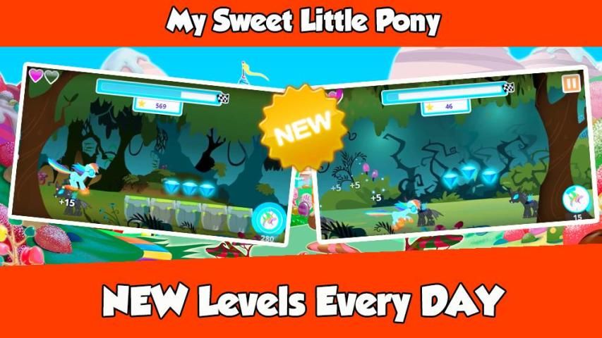 The hero little pony here is not the pony from the serie “My Little Pon Equestr Girls” to be precise and has nothing to do with the ponys Character in the cartoon! As you can see there is.. here ? ! It is created for fun!! It is now available with so much fun. Run in the nature … Run in a fun world full of princesses girls adventures. Jump over My Sweet Little Pony Adventure is easy to play, you can give it to your kids and you can play it too .The most important thing is to help the little Pony , this super hero to collect money and find the gold he lost. In a princesses world full of adventure, you should make sure, you run and jump correctly, that you don’t run on spikes and don’t hit obstacles and don’t stop or the enemies will get you. Use your smooth, easy moves to guide our pony on his adventure. What are you waiting for now just try?...Just download this copy of this amazing game.