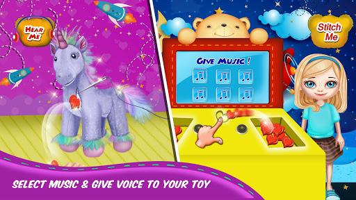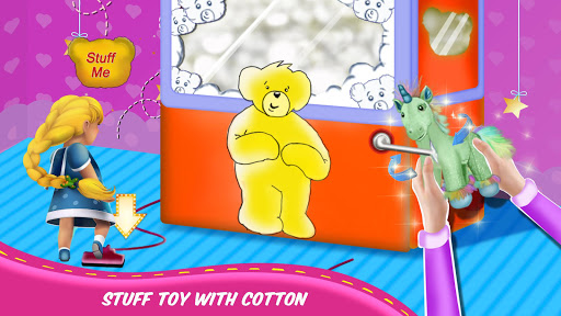 In this toys factory games world you first choose your toy skin from a selection of unicorn horses, DIY paper dolls, and teddy bears in this doll avatar maker panel. Then you can craft toys with glowing makeup, hairstyle, and fashion doll dress ups. After choosing the skin go to the stuffing machine for making and decorating your DIY Paper Doll is an avatar maker dress-up fashion or dream toy in toys factory games. Fill cotton in the toys with a stuffer machine, place voice chip, and stitch the stuffed doll like the best tailor. To make the stuffed doll, teddy bear, and unicorn more fluffy and soft place it in the machine. After completing the toys making process now it is time to unleash your inner builder skills to avatar makeover the dolls like a fashion designer.
