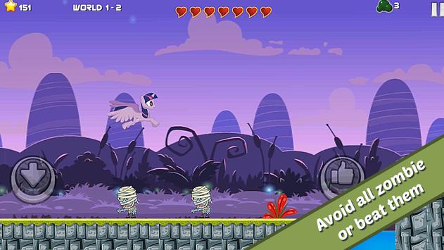 How to playing this amazing My Twilight Little Pony Adventure games? Very easy to playing. The Sparkle always run and runs after your begin games. You just only jump or slide and throwing object. Use up button for jump, down button for slide, and button of A to throw the enemy