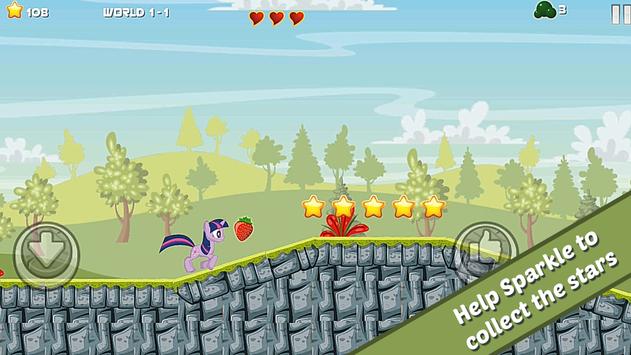 Are fans and love with sparkle? She is a female unicorn pony and becomes a princess, member of MLP. If you fans with the little pony, help she to reach the his palace.