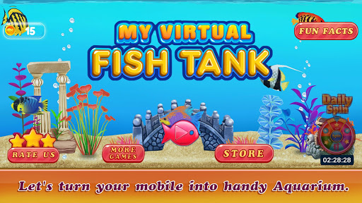 My virtual Fish Tank is an interactive virtual Aquarium for your phone & tablet. Sit back, relax and enjoy a variety of sea & freshwater fish swimming about in a colorful coral reef habitat. Set up your aquarium by choosing from 25 fish and 10 environments or design your own custom Aquarium. Interact with your pets by taping on the fish and feeding them.