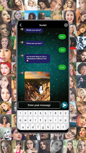 Hello everyone, welcome to My Virtual Girlfriend 2 - Texting Game. After reading all your emails and suggestions regarding part one we decided to make the second part of this great game. Now you can finally send text messages but not only that, you can also talk to girls about things concerning the region you come from. For example, if you are from USA the girl's name will be Scarlett and she'll tell you "My favorite thing in USA is Yellowstone National Park".