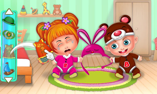 Meet twins funky kids, enjoy with them, solve the puzzles, choose toys for babies, decorate baby room, set the furniture in the room.