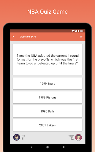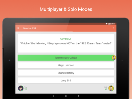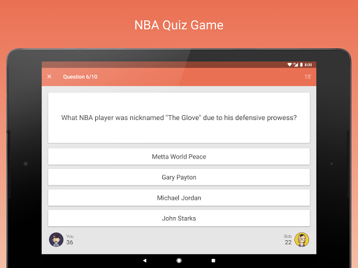 Fan Quiz for NBA is a trivia game for real basketball fans! Play a heads up or single player game and test your multiple choice answering skills. There are over a thousand questions for you to answer, with more added every day!