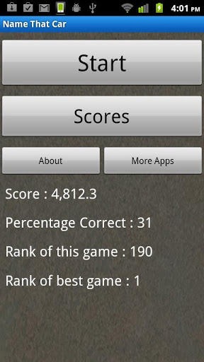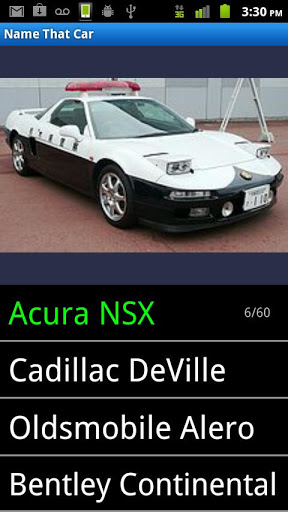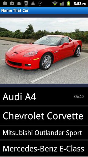An image based automobile identification trivia quiz game. global scoreboard over 1600 images Makes and models include :Acura, Audi, BMW, Chevrolet, Corvette, ferrari ford Honda, Jaguar, Lamborghini, Lexus, Lotus, Maserati, Mazda, Mercedes, Mitsubishi, Nissan, Porche, Rolls Royce, Saab, Toyota, Volkswagen, Volvo Game play infoNote that due to having a lot of nice high quality photos, this game will probably take a few minutes to download.I would recommend downloading this while you are using wifi especially if you have a limited internet data plan.1 After you download the app, just open it and click start, choose the length of the game that you want to play 10, 20, 40, 60, 80, or 1002 Tap one of the four multiplechoice answers.If you are correct, the answer that you selected will be green, and the three others will be white.If your are not correct, your answer will be red and the right answer will be green, and the remaining two will still be white. Score Calculation for those interested in dominating the leader boardYour score is calculated from 3 variables:1 the percentage of questions that you got correct2 the length of game that you selected longer is better3 the average time that you took for each question. 2 notes about time:A only thinking time is considered. That is, the time between when you answer and advance to the next question is not counted.So that is a good time to take a break or exit the app during the middle of a gameB your slowest 10 of answer times are thrown away and are not factored into your average time. This is designed to not punish a player when they exit pause the app to answer a phone call or text message but still prevent cheaters from getting the best rank.Here is the formula: 11 percent correct sqrtaverage answer time 1.5 number correct sqrtaverage answer time keywords: id vehicle van truck station wagon quiz trivia