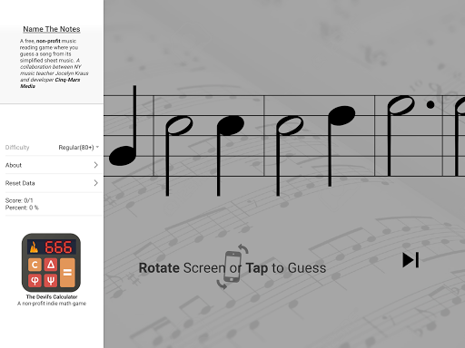 Name The Notes is a free, non-profit sheet music, sight reading game. Simple but fun and educational, imagine "Name that Tune" but with sheet music!