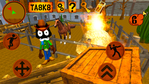 Enjoy the Best hide & escape western game about the Cat Cowboy. Cartoon Neighbor! Redemption is waiting for him!