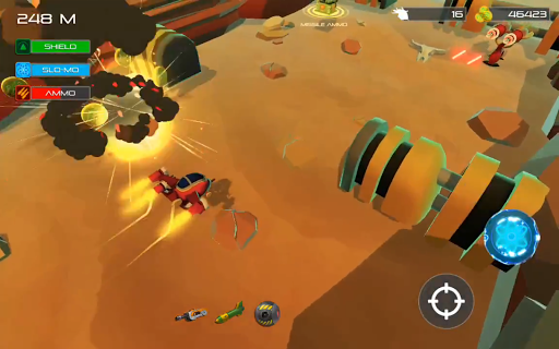 Action-packed endless shooter. Take to the sky and fight to the invaders for NeoArk Squadron. Build up your hangar with more powerful fighter jets. Upgrade your fighter jets to fight the galactic alien enemy. Destroy UFO’s, gun and missile turrets and stasis generators to rescue our planets animals. Learn to Master Slo-Mo to help target the enemy and traverse obstacles.