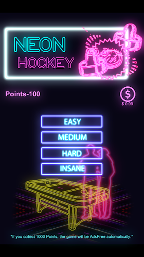 The best thing about Neon Hockey is that it has adjustable difficulty, so you can easily play on Easy, Medium, Hard and even Insane if you want!