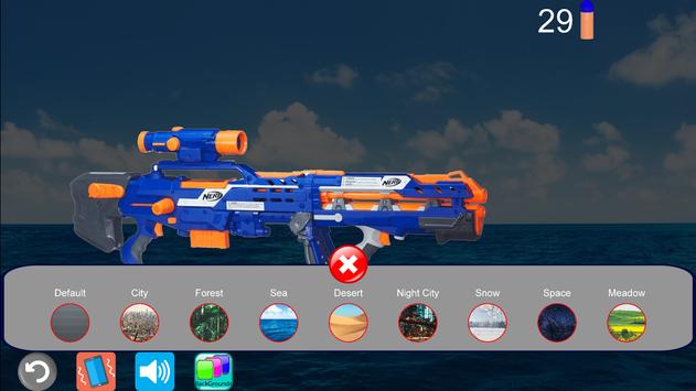 You can shoot Nerf N-Strike Guns in City, Forest, Sea, Desert, Night City, Snow, Space, Meadow.