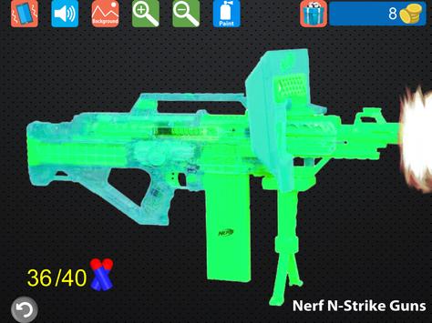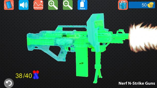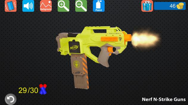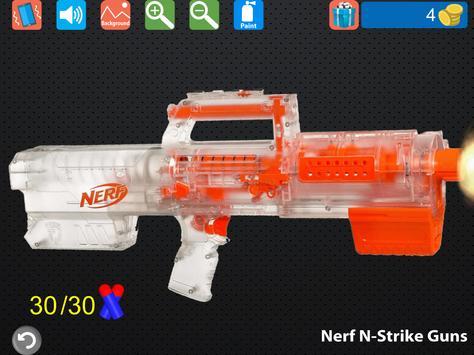 In Nerf N-Strike Guns, you can use the Paint menu to paint nerf guns in the color of your choice. There are many colors for you to paint on the Toy gun. Create your own gun. Bring your Nerf gun advertising to your friends, so they can see how good you are.
