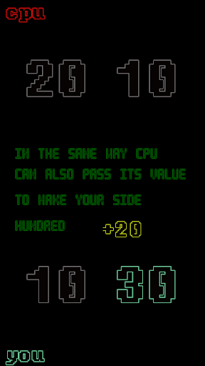 The goal of the game is not to get hundred on both of your sides and you can pass your values to your opponent's side as well as your other side to make your opponent's side hundred. It is a Math addition & Subtraction style puzzle game