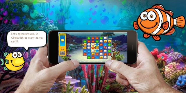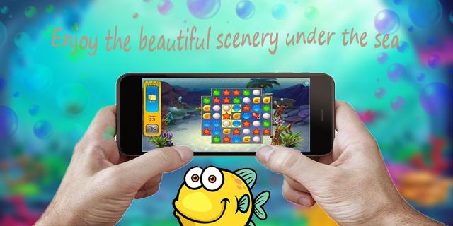 1: Match 3 or more fish based on the colour and shape.
