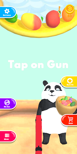 - When you tap on or hold on the gun. The gun shoots with a ninja knife. Few guns shoot with one single ninja knife and few guns shoot with a double ninja knife. There are many guns to play. Each gun is a different and interesting. And Ninja knife cutter cuts in 3D in the best fruits and vegetables stock which are sliding at the half curved surface. When you tap or hold on the gun for a long period then the gun shots fast and the speed half curved sliding surface increases high. The best fruits and vegetables stock or storage are gathered or delivered in the bucket of Panda after cutting them with the knives. There are many coin boxes at the half curved sliding surface, you have to shoot them all to collect the coins. Half curved sliding surface moves at the sky and looks like icing on the cake. Just chop it up and take enjoy and avoid the wooden pad.