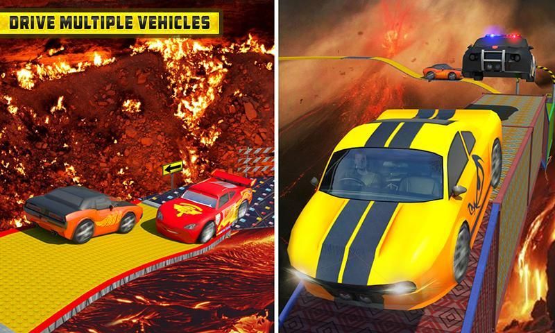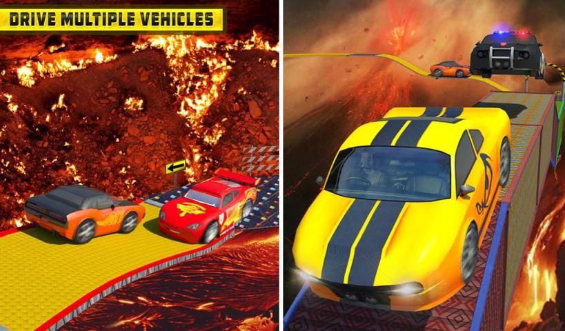 - Perform lava driving stunts on sky high survival tracks