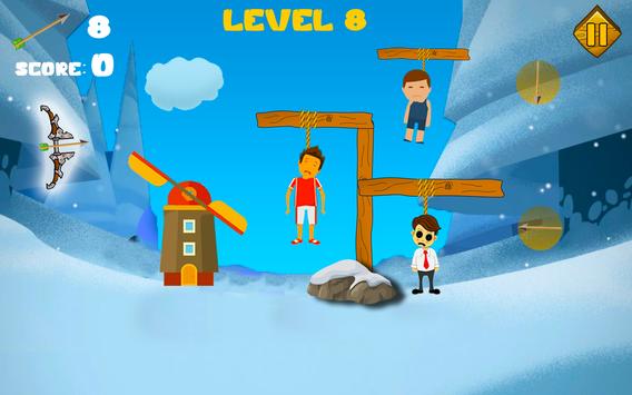Welcome to the archer challenge: bow shooting master game to save the people. This is arcade action puzzle-based game with bow, arrows, rope, archers to save the people like hangman. Tired of always losing at hangman? Now it’s time to get your own back and save the hangman's victims before they run out of breath! The cruel persons hang them for death then use your bow archer skills to save the people from deathbed. Archer Challenge: Bow Shooting Master is realistic arcade game where you aim and shoot the arrow to cut the hangman’s rope to save hangman from dying. Use your archery skills, all manner of bonuses, pickups, teleports and warps to save hangman from dying before deadline. So aim your bow and arrow carefully to cut rope without hurting his victims.