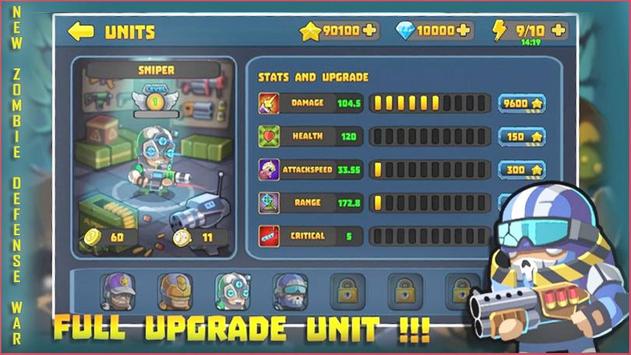 There are many types of zombies, each zombie also have different characteristics and abilities.Example, Mad Zombie have very hight move speed, attack speed, but less health and have a very ability is you can not freeze this zombie. Freeze Zombie have very hight health, but lower move speed and attack speed and have a very terrible ability, this zombie can freeze the unit.