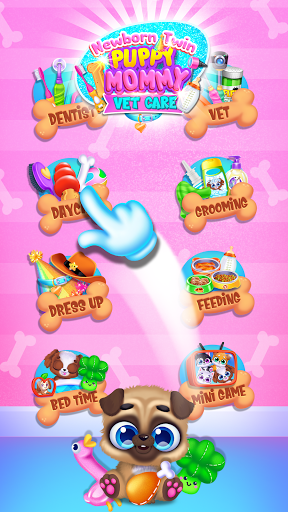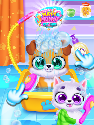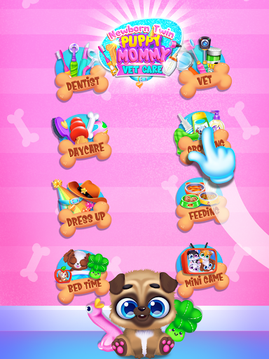 Feed your Newborn Puppy. Bathe Pup at the Salon. Keep Puppy entertained at Daycare. Decorate with Stickers, Pamper with Treats & Bones, Put Sleepy Baby to Bed! Be a Pet Vet Doctor and Dentist - provide TLC to these furry pets!