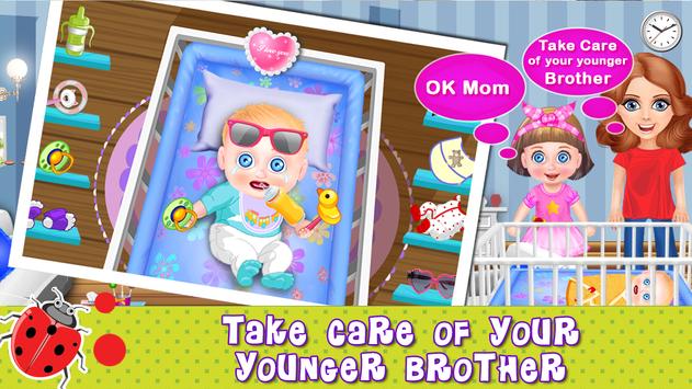 She is going to dressup the little brother well! Help her put on the little pacifier, socks, toy, glasses & much more. Oh bad, little one is hungry and little sister is alone. Help here feed the little .